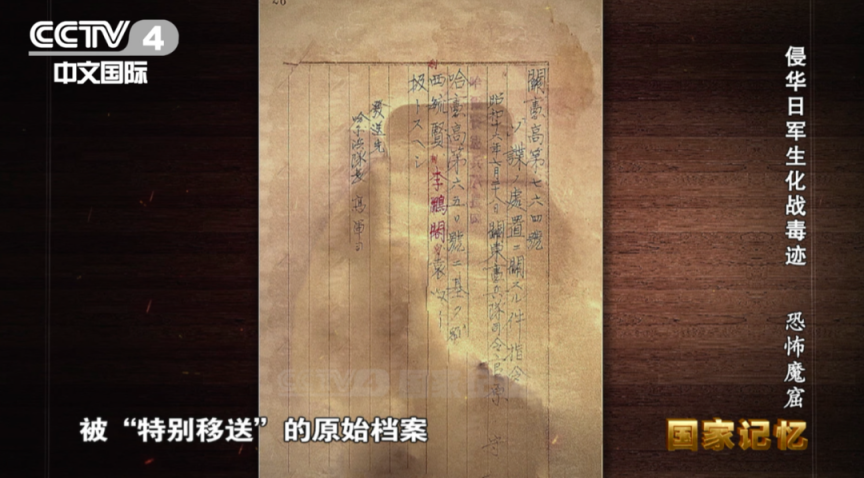 为了源源不断地提供人体实验的材料,日本关东宪兵司令部曾在1938年1月26日发布了一份叫《关于特别移送的通牒》的命令书,当中规定,宪兵对逮捕的犯人,可以在审讯后不经法律程序直接移送到哈尔滨的宪兵队,这样的移送在通牒当中被称为“特别移送”。